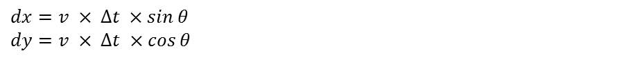- We can calculate displacement of x-coordinate and y-coordinate from value of velocity and the angle of movement from y-axis.