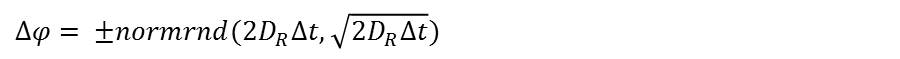 - And also, the variance σ of Brownian rotator changes ∆φ is calculated as following equation.