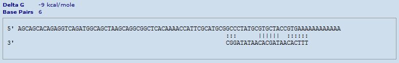 Secondary Structure of the ssDNA Aptamer with flanking primers --