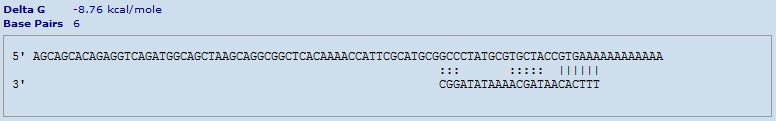 5’-AGC AGC ACA GAG GTC AGA TG GCAGCTAAGCAGGCGGCTCACAAAACCATTCGCATGCGGC CCT ATG CGT GCT ACC GTG AAA AAA AAA AAA – thiol -3'