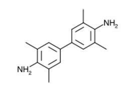 (1) TMB is oxidized by H2O2/HRP. This reaction happens with a change of color. When TMB (λmax=285nm) is oxidized, the solution takes on a blue color (λ=370 and 652nm) at first and gradually turns to yellow (λmax=450nm). ( Josephy, P. D., Eling, T., and Mason, R. P.(1982) J.Biol.Chem, 257, 3669-3675)