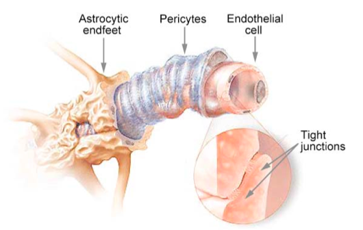 The blood brain barrier (BBB) separates circulating blood from the cerebrospinal fluid of the brain, and has evolved to protect the brain from any toxins that might be present in the bloodstream. The barrier itself is a three-pronged defensive layer comprising of tight junctions around capillary endothelial cells, a thick basement membrane, and astrocytotic endfeet. These layers only allow the selective diffusion of small hydrophobic molecules such as oxygen, carbon-dioxide, and certain hormones. However, in terms of therapy, the blood brain barrier has always been a hurdle for drugs targeting the brain since these drugs do not cross over in adequate amounts. Recently, a family of peptides called Angiopeps has been shown to be effective in crossing the blood-brain barrier via low-density lipoprotein (LDL) receptor-transport. Moreover, these peptides have been used to transport biomaterials across the BBB via protein-receptor-mediated-transcytosis.