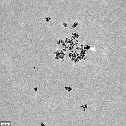 Even after changing the ratios of the chemical materials or switching between different purification methods, the TEM images of the solution still showed big clusters. Although the protocol has worked succesfully for magnetic nanoparticles in the past it was not applicable to nanodiamonds.