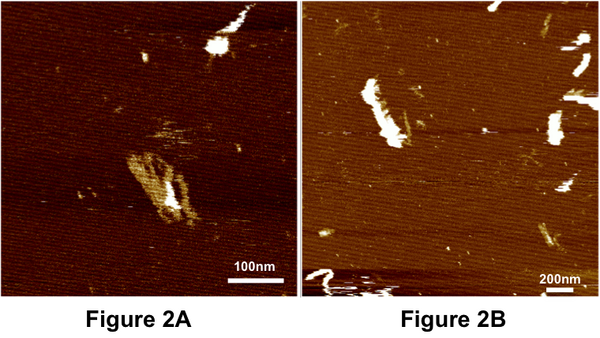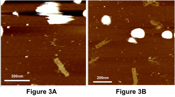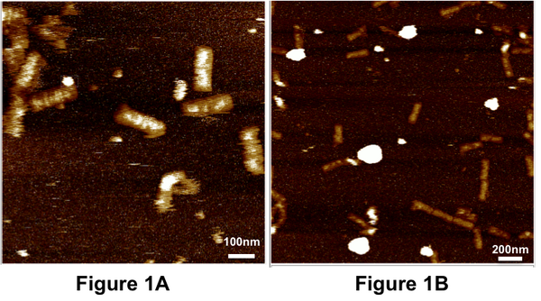 In addition, we could observe clearly a structure at the first condition. Figure 3A and 3B depict the AFM images at this time. However, the dumbbell hairpin wasn’t observed.