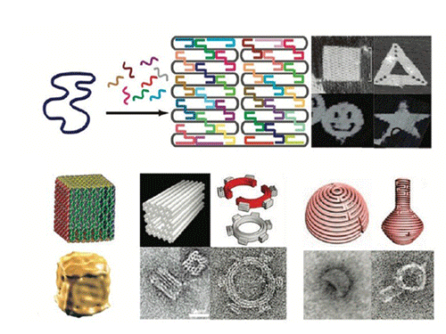The unique structural motifs and molecular recognition properties of DNA make it a promising template for building nanostructures. Using a long single-stranded DNA as a template, a novel strategy, the so-called DNA origami method, has been developed for the preparation of various two-dimensional (2D) and three-dimensional (3D) nanostructures with defined size which is predictable, precise, controllable and efficient.