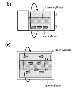The rotating wall structures provide a reduced shear stress while maximizing mass transfer due to the microgravity environment generated by the rotation of the inner and outer cylinders.[1] The rotation establishes a equilibrium of all three dynamic forces involved.[2] The major disadvantage to the RWV design is that the cell growth is not always uniform. Due to the rotating action of the cylinders, the scaffolds within the capsule tend to bounce off of the reactor wall causing cell damage along the outside edges of the scaffolds.[2] Newer techniques have found ways of alleviating this problem by using lighter scaffolds which do not bounce off the reactor walls as hard.[2]