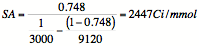 CTP used was from Perkin Elmer CTP, α-32P -3000 Ci/mmol, 10 mCi/ml, 250 µCi. Reference date for this lot was 11/21/09 so the activity is calculated as following: The activity of α-32P-CTP, lot RSO0117175 was 0.748 of total activity today based on the reference date of 11/21/09 and according to the decay chart. This is 6 days old. According to this formula, the total activity was calculated to be 2447 Ci/mmol: