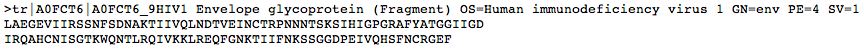 - Type in gp120 + envelope protein + HIV-1 in the search windown and then click the search button. A list of relevant protein sequences should be shown.