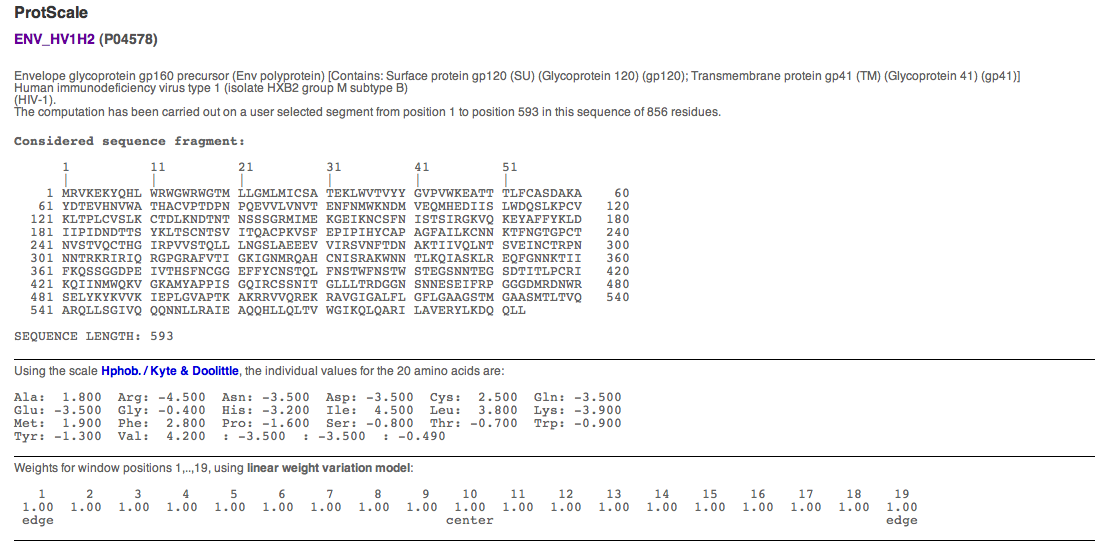 - Scroll down and select the radio button next to Hphob./Kyte & Doolittle. You do this because ProtScale gives you a large rannge of properties to choose and test on your protein. This one is appropriate for predicting transmembrane helices.