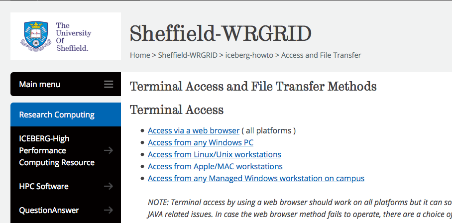 - This tutorial was originally designed to be run on the computer cluster of the University of Sheffield called Iceberg. However, if you cannot access iceberg, then access the compute cluster or desktop compute server at your own institute (assuming that they have some kind of Unix installed, of course). The section Iceberg - making first contact might still be helpful for that.