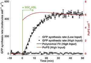 Sample step response, taken from http://partsregistry.org/Part:BBa_F2620:Response_time. |