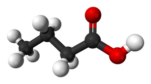 , also present in vomit, butter and Parmesan cheese and detectable by humans down to 10 ppm. There are hundreds such compounds produced by skin-dwelling bacterial species.