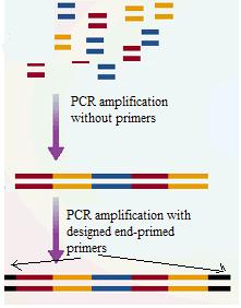 - This technique begins by fragmenting a pool of double-stranded parent genes with DNase I. Then selecting small fragments by size fractionation to maximize the probability of multiple recombination events. After this, the first round of PCR is performed with no added primers, instead, small fragments that overlap with each other cross-primed at this stage. After filling the space of a long recombined product from the fragments, another round of PCR is performed to amplify the recombined full-length product using terminal primers.