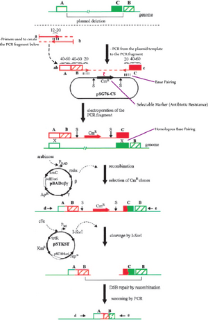 Iwadate et al. in 2011 were able to use a method involving a red gene-mediated lambda phage homologous recombination system [12] to systematically remove up to 38.9% of E. coli's chromosome [7] .