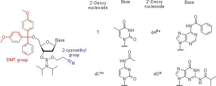 Oligonucleotides, short single-stranded DNA pieces, are chemically synthesized from DNA phosphoramidite monomers. Briefly, activated phosphoramidite monomers are added in the 3' to 5' direction using a cycle of activation and blocking chemistry to obtain a DNA polymer linked by phosphodiester bonds.
