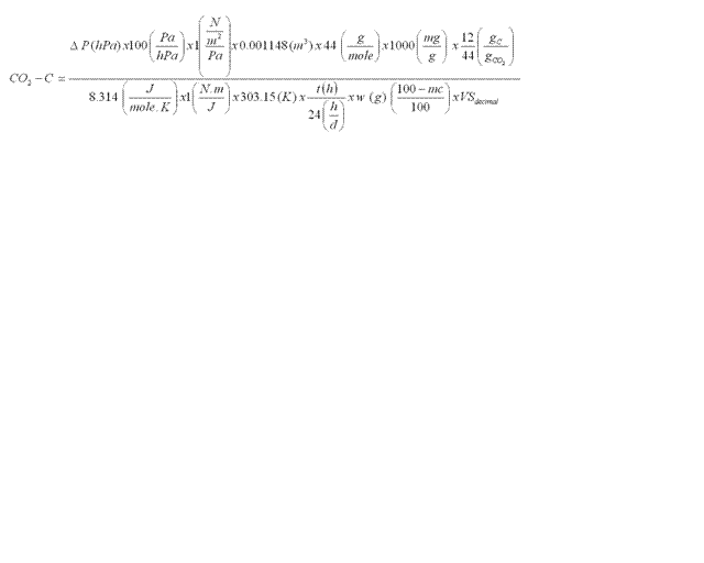 - [math]\displaystyle{ CO_2-C }[/math]is the evolved carbon dioxide-carbon [mg]