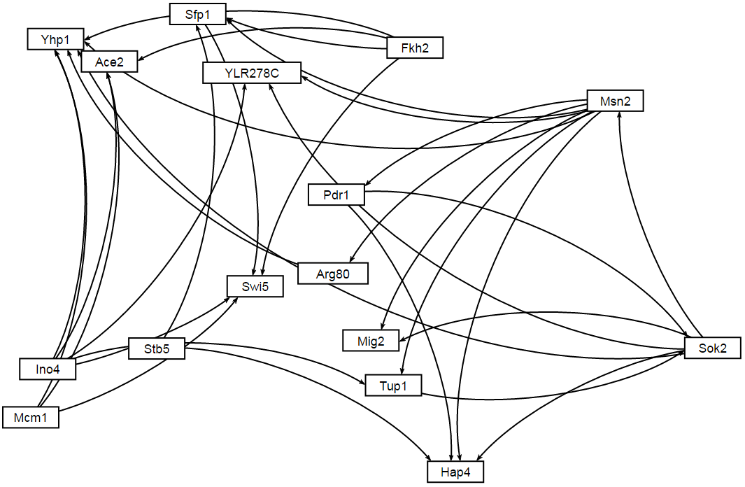 - For the mathematical model that we will build, we need to define a gene regulatory network of transcription factors that regulate other transcription factors.  We can use YEASTRACT to assist us with creating the network.  We want to generate a network with approximately 15-30 transcription factors in it.