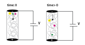 Electrophoresis is the migration of ions in a system where an electric field is applied. Force applied by the Electric Field (FEf) is proportional to its effective charge (q) and the electric field strength (E)