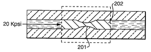 Freezing/thaw valves use a thin channel that has a freeze plug and when axial force is applied will constrict (Figure 6). These valves are used for narrow bore capillaries.This is important for high-pressure applications that can cause valve leaking. The decrease in temperature can affect the substance though so this valve can only be used in certain applications. To stop flow liquid carbon dioxide or liquid nitrogen can be used. To heat and melt the liquid freeing flow, a hot stream of air or electrical current can be applied.7