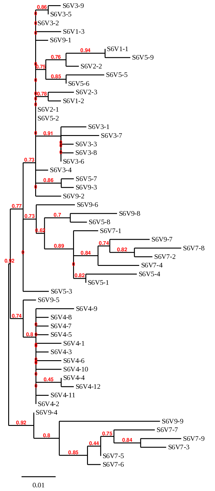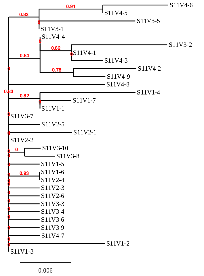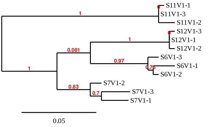 - I used the resources at www.phylogeny.fr to create a multiple sequence alignment and phylogenetic tree comparing clones 1-3 from visit one from subjects 6,7, 11, and 12