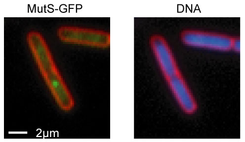Newly duplicated regions of the bacterial chromosome separate from each other while the remainder of the chromosome is replicated, that is, before completion of DNA synthesis. We suspect that the cell harnesses the energy from the replication machine to drive separation of the newly duplicated regions. The centrally positioned replisome would redirect the sister regions, one towards each end of the cell. Current work focuses on testing this model and on understanding how the replisome position is established and maintained.