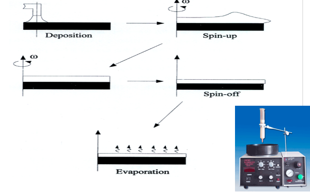 스핀 코팅이란 유체를 기 판위에 미리배치 시킨 후, 기판을 매우 빠른 속도로 회전시키면서 원심력에 의해 유체를 펼치게 된다.
