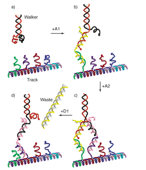 키네신의 두발보행을 모방하여 합성분자워커를 만들었다.