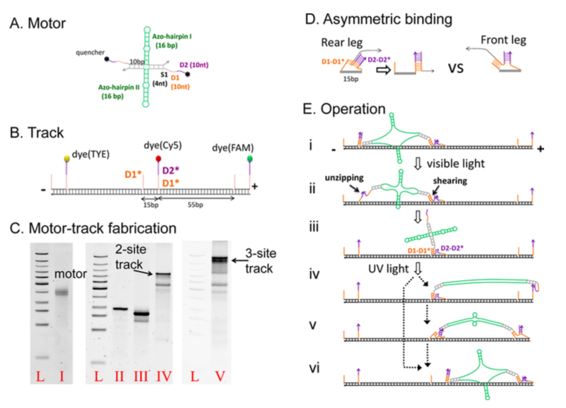 pyrene과 빛을 이용하여서 walker가 잘리고 다시 붙을 수 있다