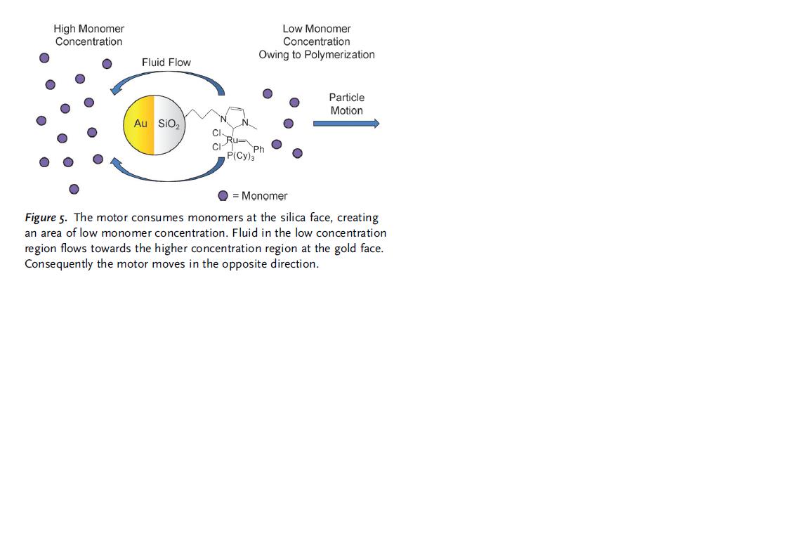 - monomer와 촉매가 ROMP(RingOpening Metathesis Polymerization)반응하여 용매 내 monomer의 농도가 낮아져 농도차구배로 모터의 이동