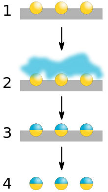 1.균질 나노 입자는 단 하나의 반구가 노출되는 방식으로 또는 표면 상에 배치