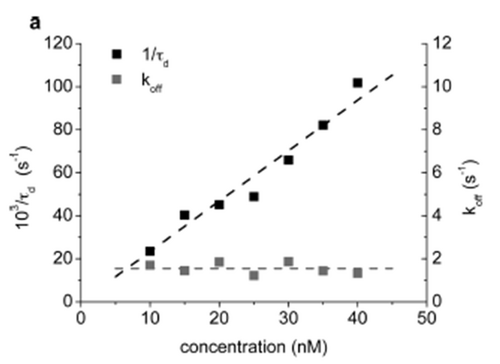 1.결합상수 kon 계산 : 1/τd = kon*c (τd:dissociation time, c:imager strand concentration)