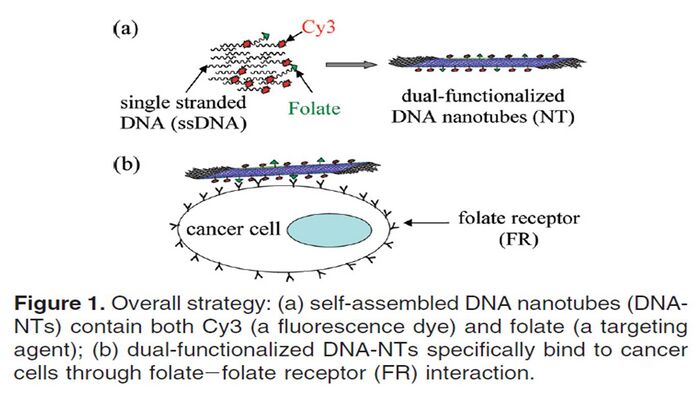 folate 사용한 이유:folate receptors(FRs)는 다양한 암세포 표면에 보통 발현되며, 암세포에 대해 biomarkers로 사용되어 왔음 - DNA-Nanotubes