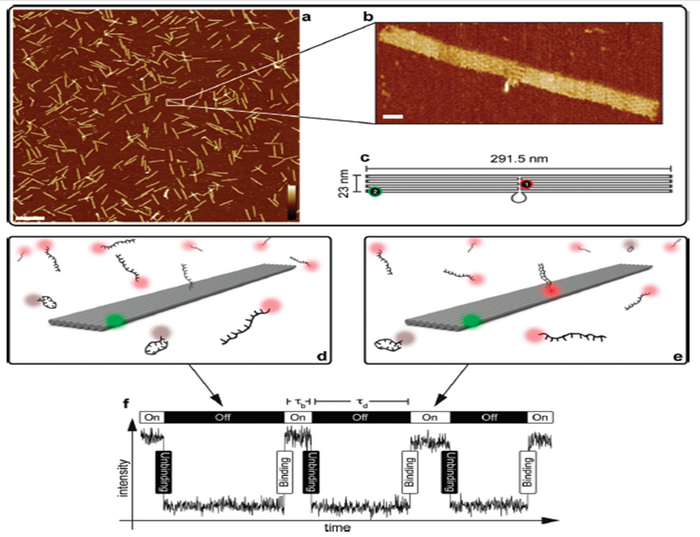 2.single-stranded docking strands protruding에 대한 형광 표지된 짧은 DNA oligomucleotides의 dynamic binding and dissociation에 대한 single-molecule assay를 소개한다.