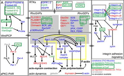 To this aim, I developed a method utilizing fluorescence activated cell sorting (FACS) and microarray analysis to obtain TVC-specific genome transcription profiles. These data, together with an analysis of the function and regulation of the Rho GTPase RhoDF, indicated that 1) the gene regulatory network impinges on most cellular processes underlying cell migration, including actin dynamics, cell-matrix adhesion, polarity and vesicle trafficking; 2) for each cellular process, only a subset of the effector genes are subjected to transcription regulation and 3) specific cell behaviors result from the modular association of individual cellular processes that can be experimentally uncoupled from each others. This study led to the identification of additional candidate regulators and effectors of TVC migration and to the definition of a conceptual and experimental framework for future studies.