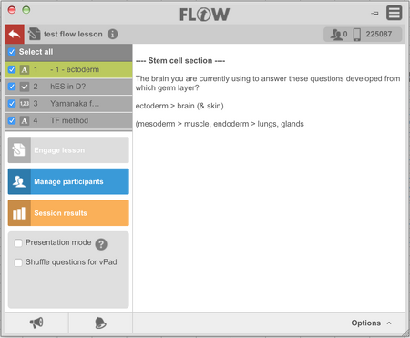 - Flow should have an option to display the question type and the answer. As the presenter, I can only see that in the lesson editor but not when I'm giving a quiz. Especially for informative questions, it's crucial to know the question type.