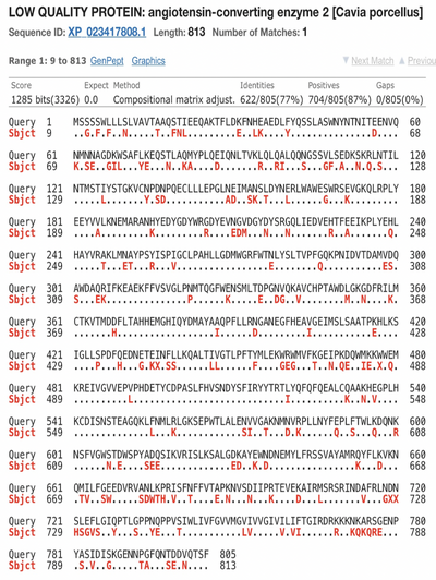 - Angiotensin I converting enzyme 2 Domestic Guinea Pig - Protein - NCBI. (2020). Retrieved 6 December 2020, from https://www.ncbi.nlm.nih.gov/protein/XP_023417808.1?report=fasta