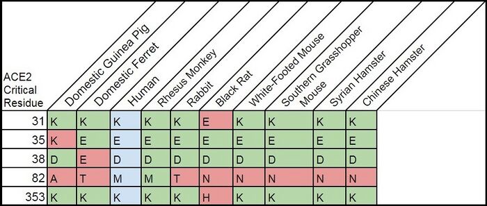 - I used the information found above to identify these critical residues for all of the aligned ACE2 sequences.