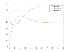 - Figure 4 shows a plot of yeast growth and nutrient concentration for two separate nutrients.