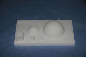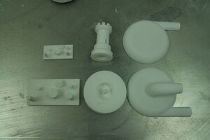 Selective Laser Sintering is an additive process that uses a laser to sinter fine powder into solid shapes. Various materials can be used in the system. Briefly, a typical SLS machine has two feed bins and one part bin. A roller deposits a thin layer of powder over the part bin. A laser then scans over the powder and sinters only areas which are determined by software in the controller PC. A more detailed description is available on Wikipedia