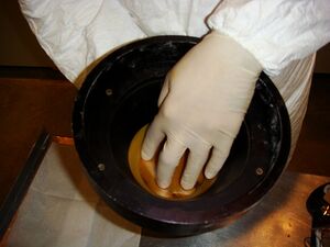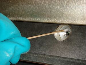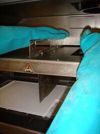 Wearing clean latex gloves, tap out the window, noting which side was exposed to the build chamber