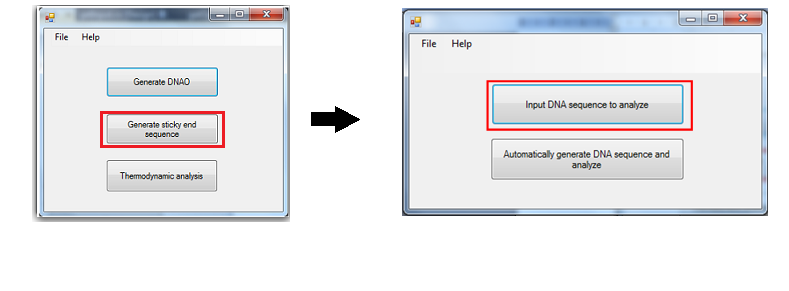 The other component of the software is also to support the sticky end analysis in which thermal dynamic values of the sequence are calculated. Users need to enter the sequence they want to analyze, together with the condition in which they would test the DNA (total DNA strand concentration, Na+ concentration, and melting temperatures). Thermaldynamics value including deltaG, deltaS, deltaH, and Tm are provided in the results pages.