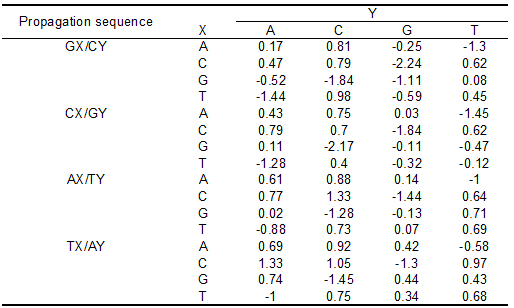 There are 10 propagation steps, 1 initiation, and 1 terminal AT correction to make up a total of 12 NN parameters shown in Table 1. These values are obtained via multiple linear regression of the results from differential scanning calorimetry (DSC) of 108 short DNA sequences.
