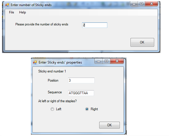 Users can also choose to add sticky end by enter the number of sticky end they need and specify the sequence and location of sticky ends in the scaffold.