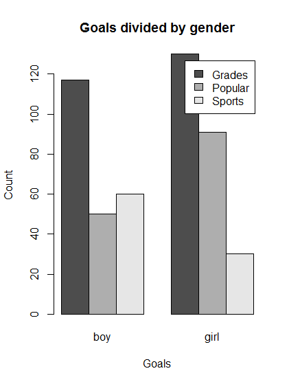 - Interpretation: boys and girls are similar with respect to desire for good grades, but girls rate being popular higher than sports and boys rank them about equal.