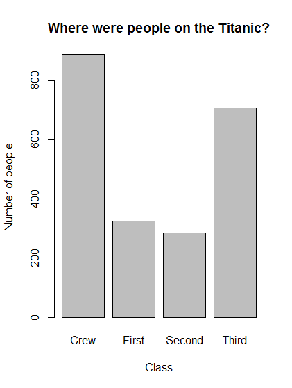 # Save a two-way table of gender by class for Titanic data genderClass <- table(titanic$gender,titanic$class) genderClass