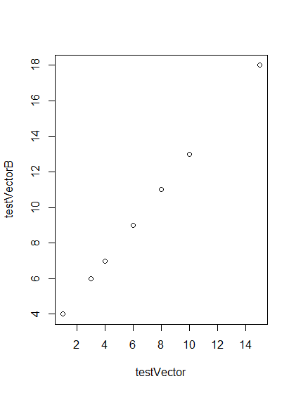 # Make a plot of two vectors plot(testVector, testVectorB)