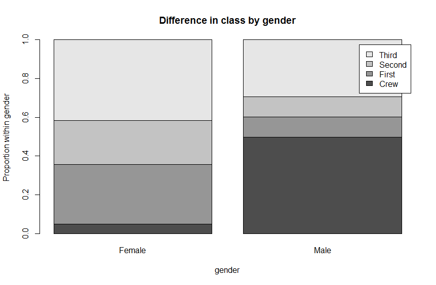 # define a new variable which is the transpose of gender by class and display genderClass2 <- t(genderClass) genderClass2