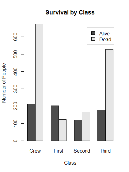 Crew First Second Third Alive 0.09631985 0.09223080 0.05361199 0.08087233 Dead 0.30577010 0.05542935 0.07587460 0.23989096