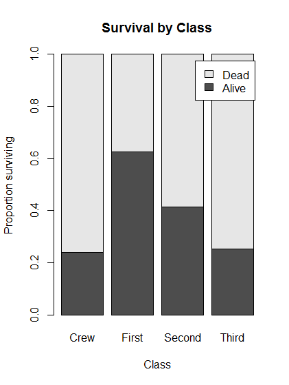 Crew First Second Third Alive 0.2395480 0.6246154 0.4140351 0.2521246 Dead 0.7604520 0.3753846 0.5859649 0.7478754