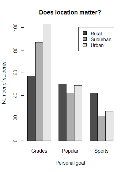 Grades Popular Sports Rural 57 50 42 Suburban 87 42 22 Urban 103 49 26